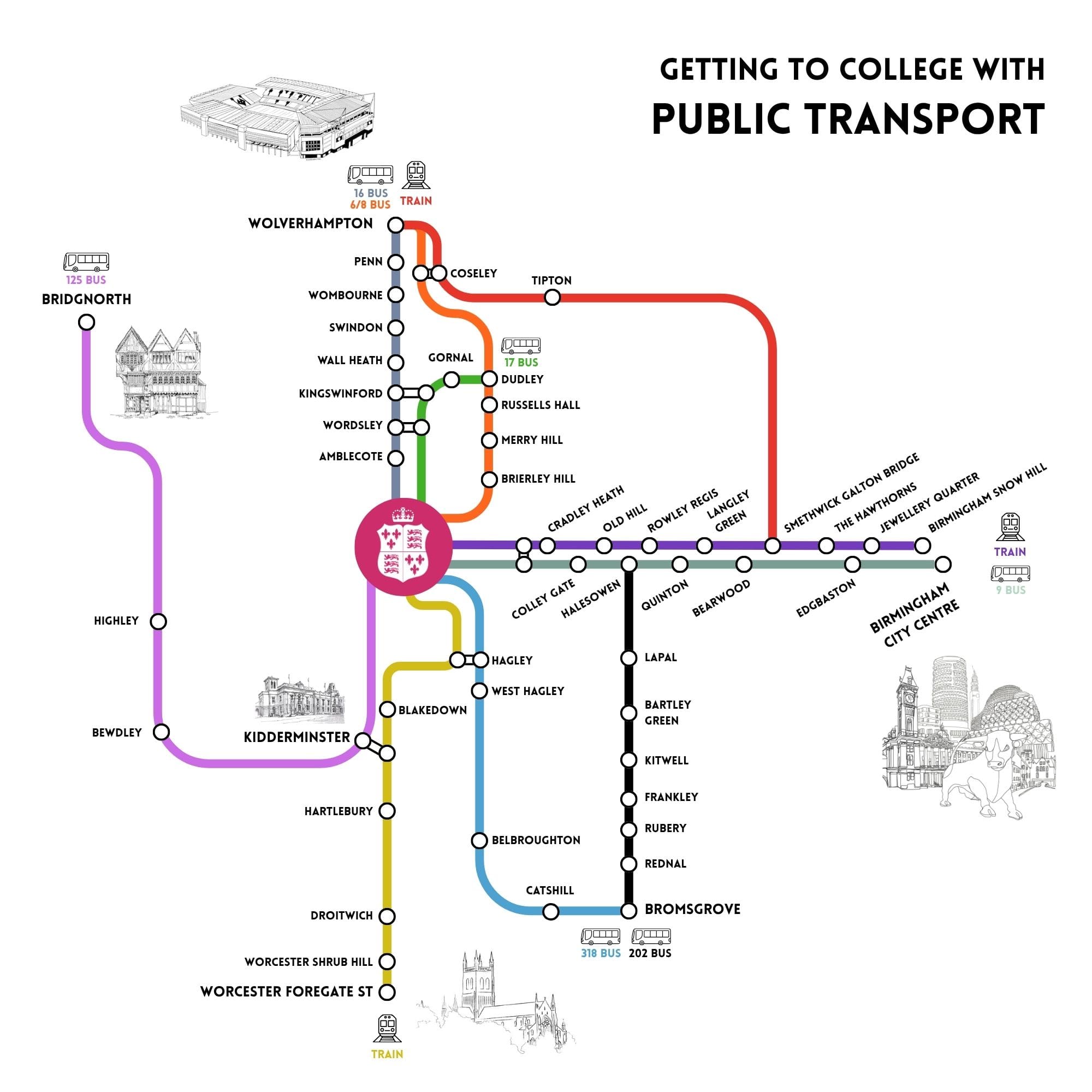 Travel to college is easy via public transport. We are just a five-minute walk from Stourbridge Interchange, the combined bus and train station. The interchange is connected to Stourbridge Junction Railway Station via The Stourbridge Shuttle, which runs approximately every 10 minutes between Stourbridge Town Centre and Stourbridge Junction.