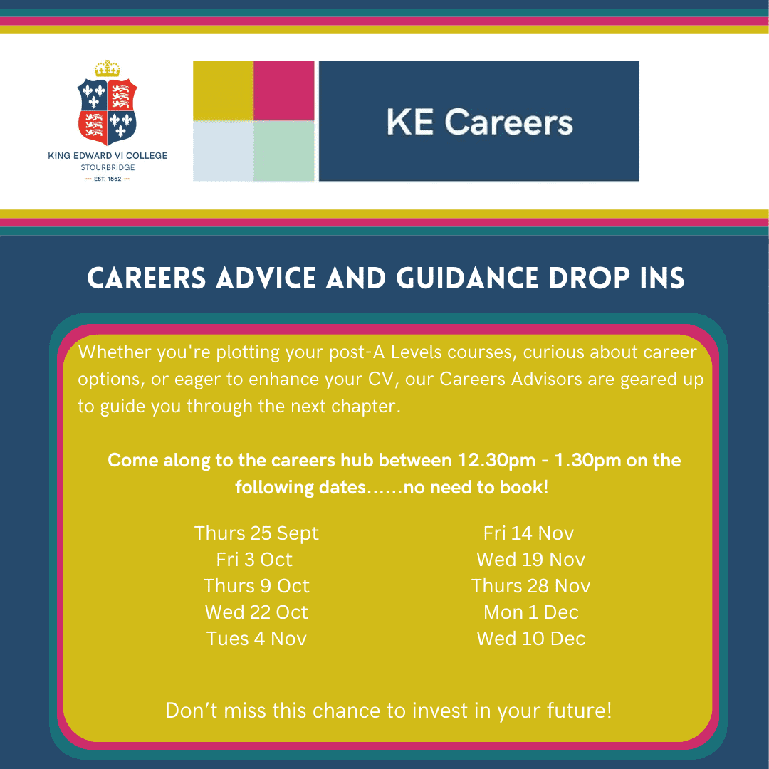 You can also see an overview of support on offer to both year 12 and 13 student in our KE Careers Programme 2025/26 and our KE Careers Programme webpage.