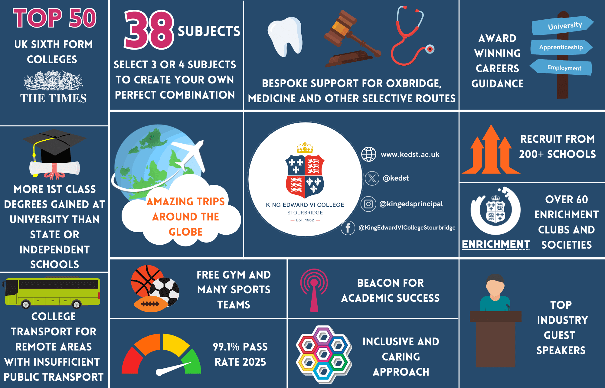 At King Edward’s, our holistic approach to A level education helps to develop skills for success: year on year our students outperform their peers in Higher Education, including those from fee-paying schools! We offer you not just a fantastic choice of subjects, but also an education that prepares you for a fulfilling future.